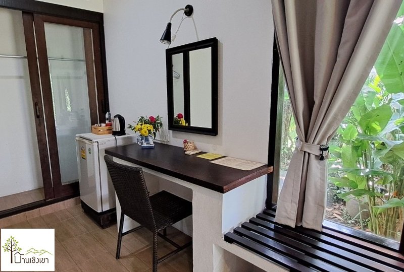 ห้องดีลักษ์ และห้องสแตนดาร์ด ภายในห้องพัก มีสิ่งอำนวยความสะดวกครบครันสำหรับท่าน ไม่ว่าจะเป็น ตู้เย็น โต๊ะเครื่องแป้ง โต๊ะเครื่องเขียน ทีวี เครื่องปรับอากาศ อินเตอร์เน็ตไวไฟ ตู้เสื้อผ้า และเครื่องทำน้ำอุ่น พร้อมบริการอาหารเช้าสำหรับ 2 ท่าน ณ ห้องอาหารเสบียง @บ้านเชิงเขารีสอร์ท ระนอง เวลา 7:00 - 10:00 น.