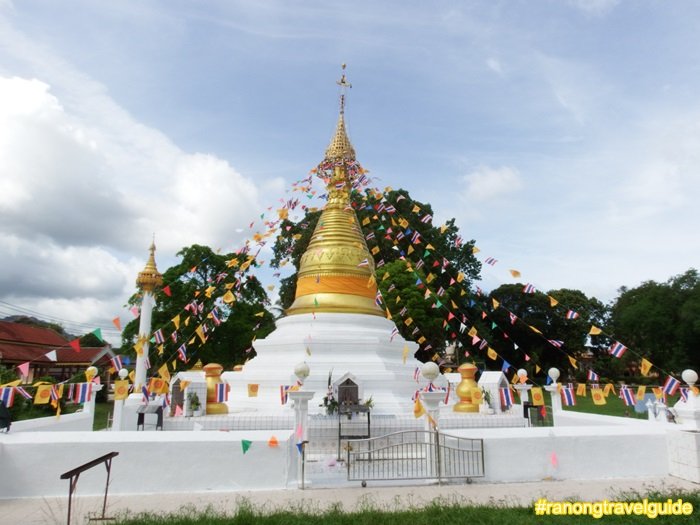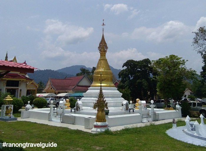พระเจดีย์ดาธุ เป็นเจดีย์ที่มีสถาปัตยกรรมแบบพม่า รูปทรงกลมยกฐานสูงจากพื้นประมาณ 80 เซนติเมตร ตั้งอยู่บนฐานแปดเหลี่ยมจากฐานถึงยอดฉัตรสูงประมาณ 13 เมตร มีกำแพงโดยรอบทั้งสี่ด้านสูงประมาณ 1 เมตรแต่ละด้านของกำแพงมีประตูทางเข้ากว้างประมาณ 2 เมตร ตัวเจดีย์และกำแพงฉาบด้วยปูนทาสีขาว ส่วนยอดฉัตรของเจดีย์ทำด้วยทองเหลืองและประดับเพชรที่ฉัตรเป็นสถาปัตยกรรมแบบพม่า เจดีย์นี้สร้างประมาณ 100 ปี ผู้สร้างคือนางพั่วไซ่ข่าย มีสามีชื่ออูอาวเม ซึ่งเป็นโหรในราชสำนักพม่า ได้อพยพอยู่ในจังหวัดระนอง และด้วยเป็นผู้ที่ฐานะดี มีความเคารพศรัทธาในพระพุทธศาสนา จึงได้สร้างเจดีย์นี้ถวาย โดยใช้ทุนทรัพย์ส่วนตัวเพราะมีความเชื่อว่าหากผู้ใดได้สร้างเจดีย์ถวายในพระพุทธศาสนาแล้ว จะเป็นการสร้างบุญบารมี ให้กับผู้สร้างในทุกภพทุกชาติ ปัจจุบันทายาทของท่าน รวมทั้งพุทธศาสนิกชนชาวพม่าที่ได้อพยพจากพม่ามาอยู่ที่จังหวัดระนอง จะช่วยกันความสะอาด และบูรณะสภาพโดยตลอด ทำให้พระเจดีย์มีความสวยงาม เป็นที่เชิดหน้าชูตาของชาวระนองและนับเป็นโบราณสถานอีกแห่งหนึ่งของจังหวัดระนอง โดยปัจจุบันกรมศิลปากรได้ขึ้นทะเบียนไว้แล้ว