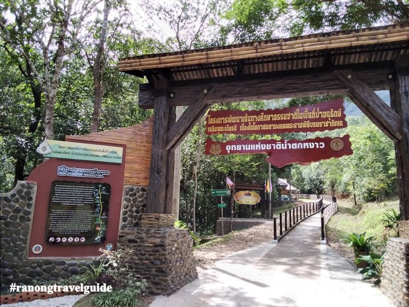 อุทยานแห่งชาติน้ำตกหงาว ได้มีการประกาศจัดตั้ง ในวันที่ 3 มิถุนายน พ.ศ. 2542 มีเนื้อที่ 417,500 ไร่ (ุ668 ตารางกิโลเมตร) ครอบคลุมพื้นที่จังหวัดระนอง และจังหวัดชุมพร มีสภาพป่าอุดมสมบูรณ์ มีธรรมชาติที่สวยงามเป็นป่าต้นน้ำลำธาร มีแหล่งท่องเที่ยวที่น่าสนใจมากมายมีทั้งการท่องเที่ยวเชิงอนุรักษ์ธรรมชาติและสิ่งแวดล้อม การท่องเที่ยวเชิงนิเวศ เส้นทางศึกษาธรรมชาติ ห้องเรียนธรรมชาติ และการท่องเที่ยวเชิงสุขภาพ