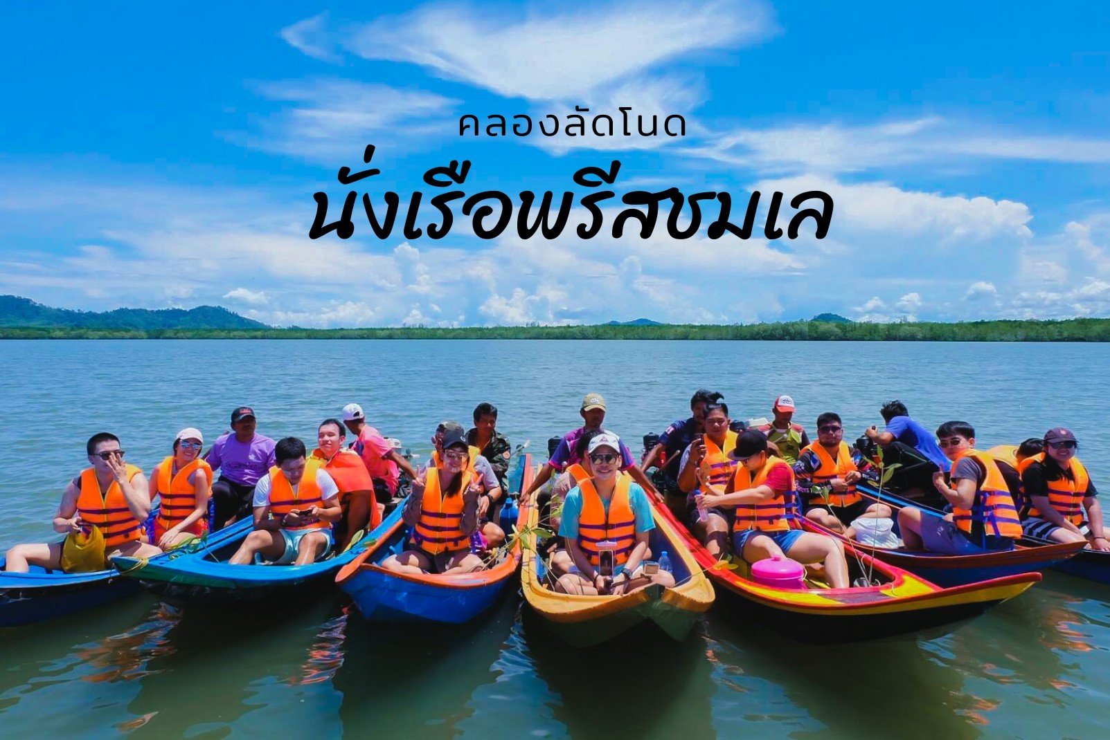 รับการต้อนรับอันอบอุ่นจากชุมชนชาวม่วงกลวง ด้วยขนมประจำชุมชน พร้อมฟังเรื่องราวประวัติของชุมชน จากนั้นเปลี่ยนชุดให้พร้อม เตรียมออกผจญภัยไปตามลำน้ำของคลองลัดโนด โดยขึ้นรถสองแถวชุมชน ออกเดินทางไปยังท่าเรือชุมชนคลองลัดโนด