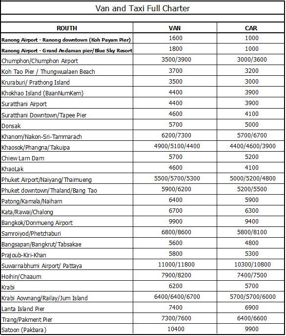 Full Charter Vip Van include fuel travel in Ranong town 2,800 THB.