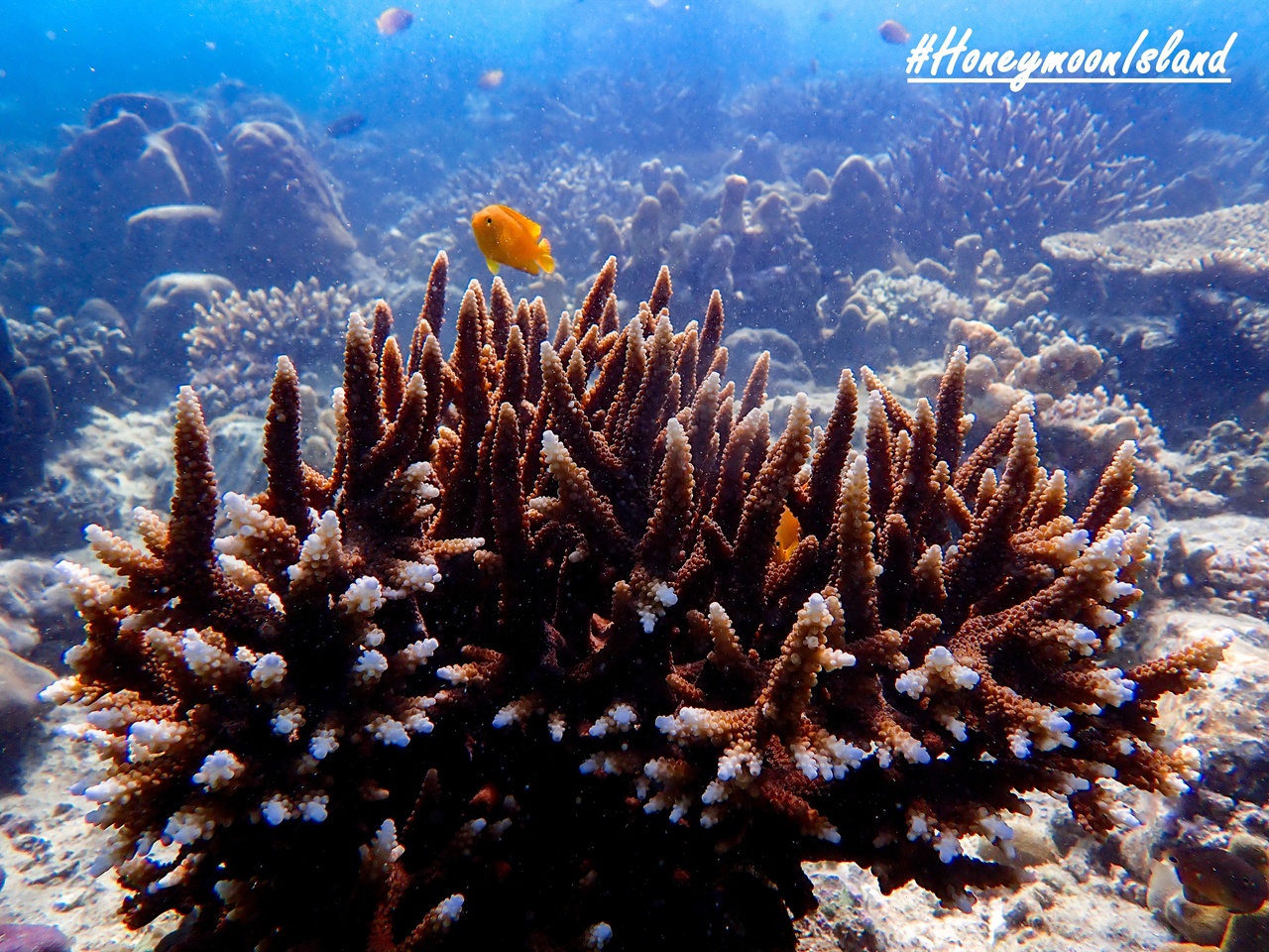 น้ำที่ใสราวกระจก ของเกาะฮันนีมูน เป็น Snorkeling Paradise ของการดำน้ำดูแนวปะการังชายหาดที่น่าสนใจ มีบ้านของปลานีโม่ หรือปลากาตูนหลากสายพันธุ์ กอดอกไม้ทะเลที่มากมายเป็นพุ่มๆ