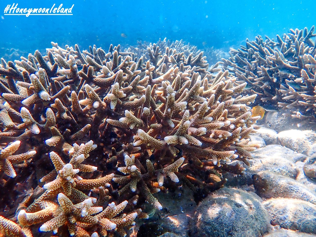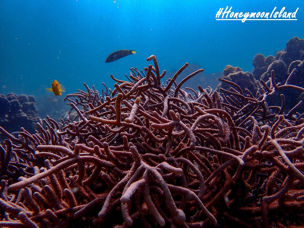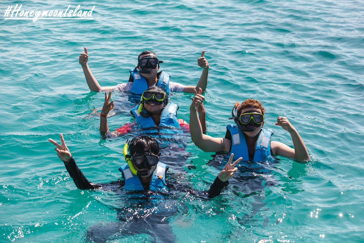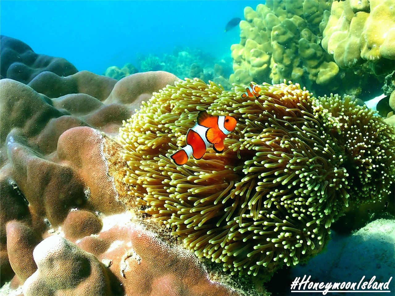 น้ำที่ใสราวกระจก ของเกาะฮันนีมูน เป็น Snorkeling Paradise ของการดำน้ำดูแนวปะการังชายหาดที่น่าสนใจ มีบ้านของปลานีโม่ หรือปลากาตูนหลากสายพันธุ์ กอดอกไม้ทะเลที่มากมายเป็นพุ่มๆ