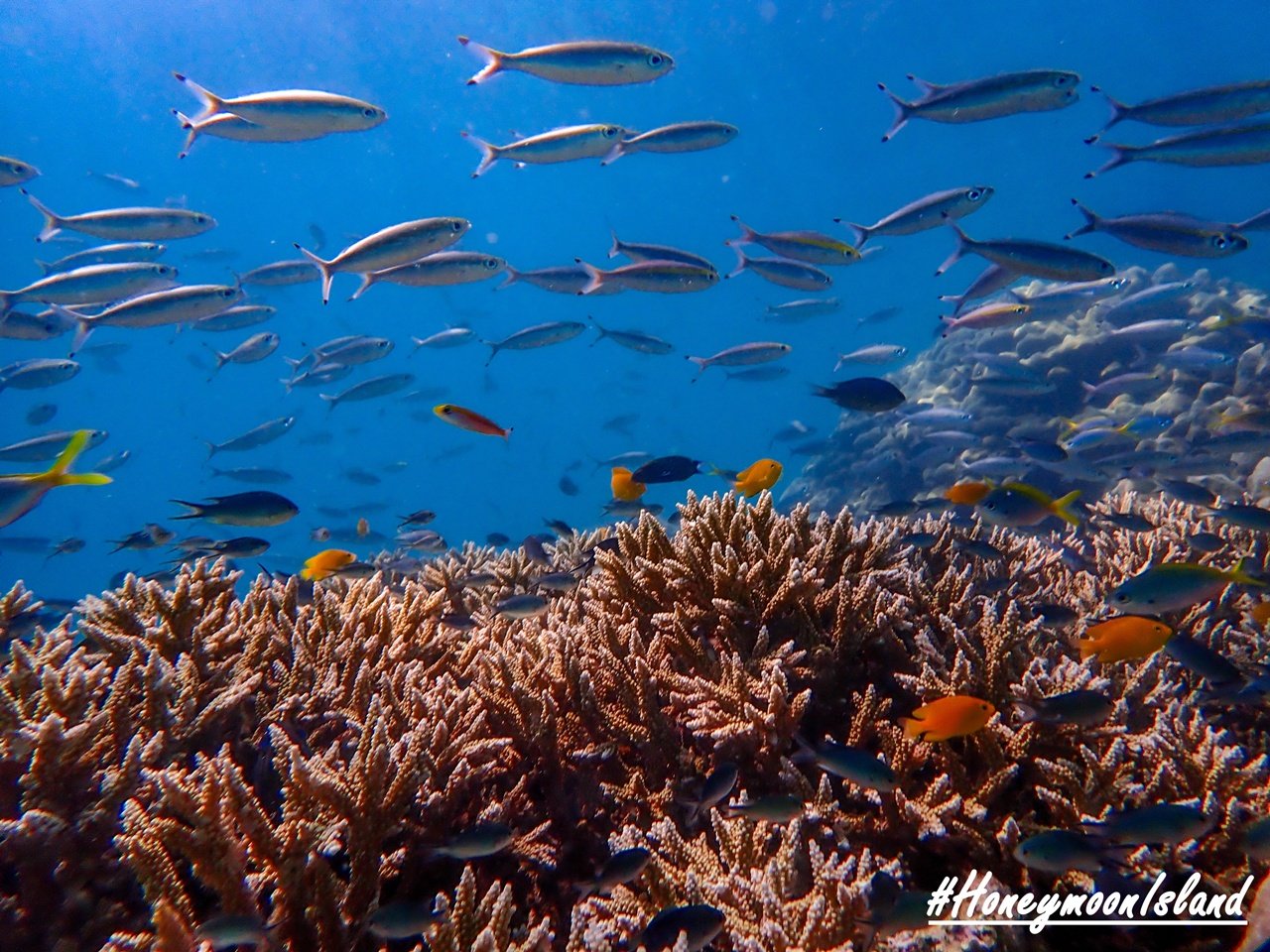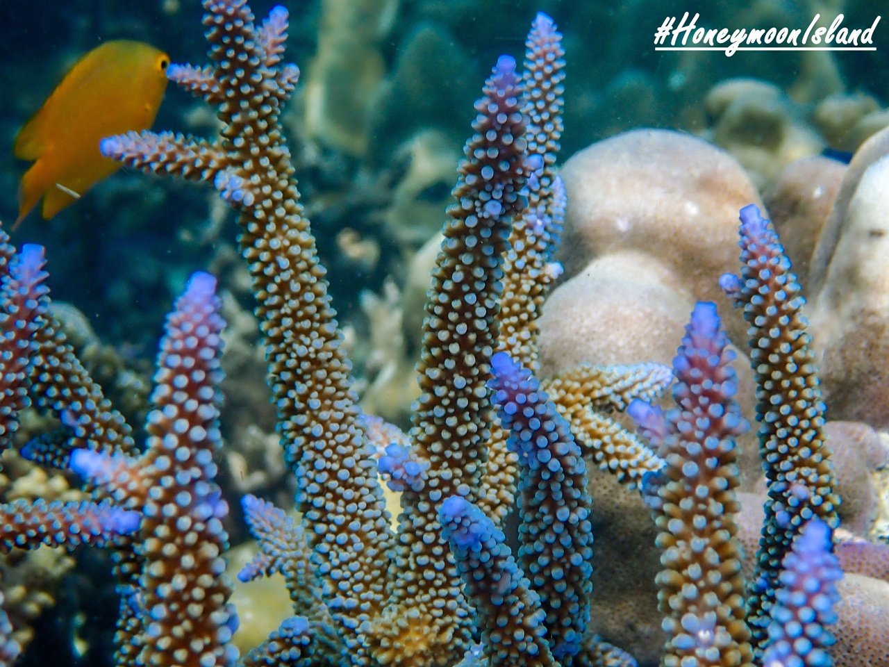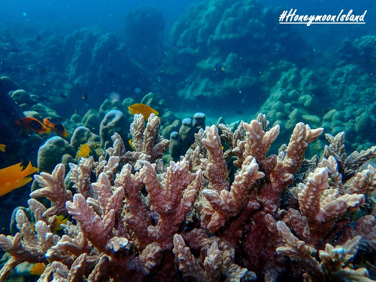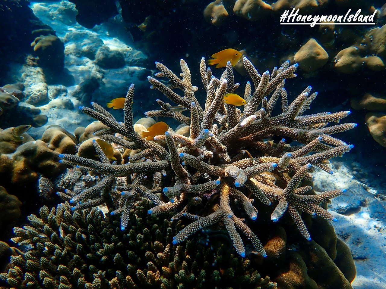 น้ำที่ใสราวกระจก ของเกาะฮันนีมูน เป็น Snorkeling Paradise ของการดำน้ำดูแนวปะการังชายหาดที่น่าสนใจ มีบ้านของปลานีโม่ หรือปลากาตูนหลากสายพันธุ์ กอดอกไม้ทะเลที่มากมายเป็นพุ่มๆ