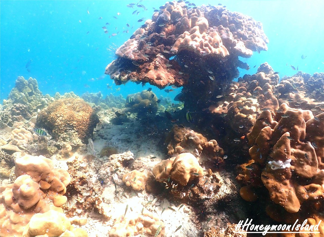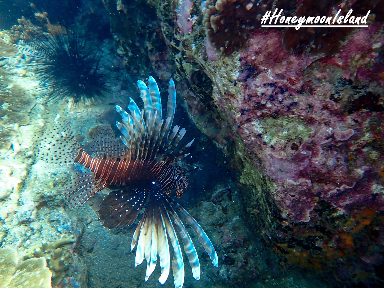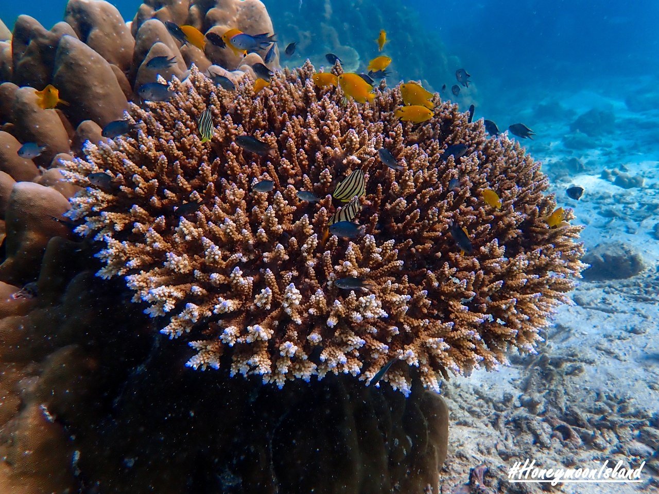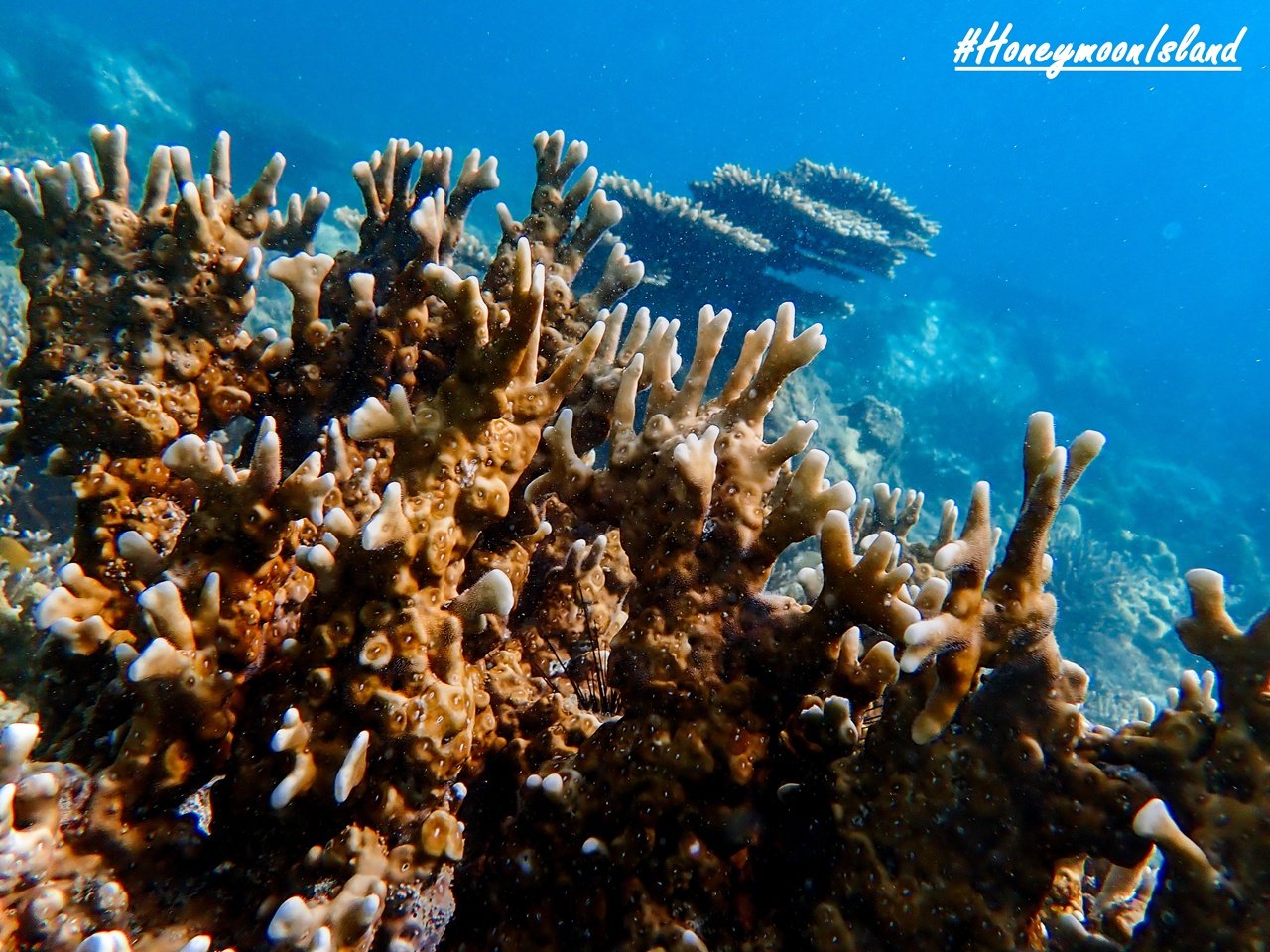 น้ำที่ใสราวกระจก ของเกาะฮันนีมูน เป็น Snorkeling Paradise ของการดำน้ำดูแนวปะการังชายหาดที่น่าสนใจ มีบ้านของปลานีโม่ หรือปลากาตูนหลากสายพันธุ์ กอดอกไม้ทะเลที่มากมายเป็นพุ่มๆ