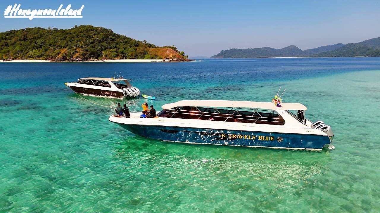 สัมผัสความเงียบสงบในบรรยากาศสุด Exclusive ที่เกาะฮันนีมูน เกาะเปิดใหม่ใจกลางทะเลเมียนมา เดินทางง่ายๆ จากระนองโดยสปีดโบ้ท ออกจากท่าเรือประภาคาร จังหวัดระนอง ถ่ายรูปกับรถสองแถวไม้ท้องถิ่นเมืองระนอง เช็คอินด้วยบัตรประชาชนใบเดียว มีค็อฟฟี่เบรคและขนมพื้นเมืองระนอง เช่นขนมอะโป้ง ข้าวเหนียวสังขยา เป็นต้น กาแฟ และชาพม่า คอยบริการท่าน